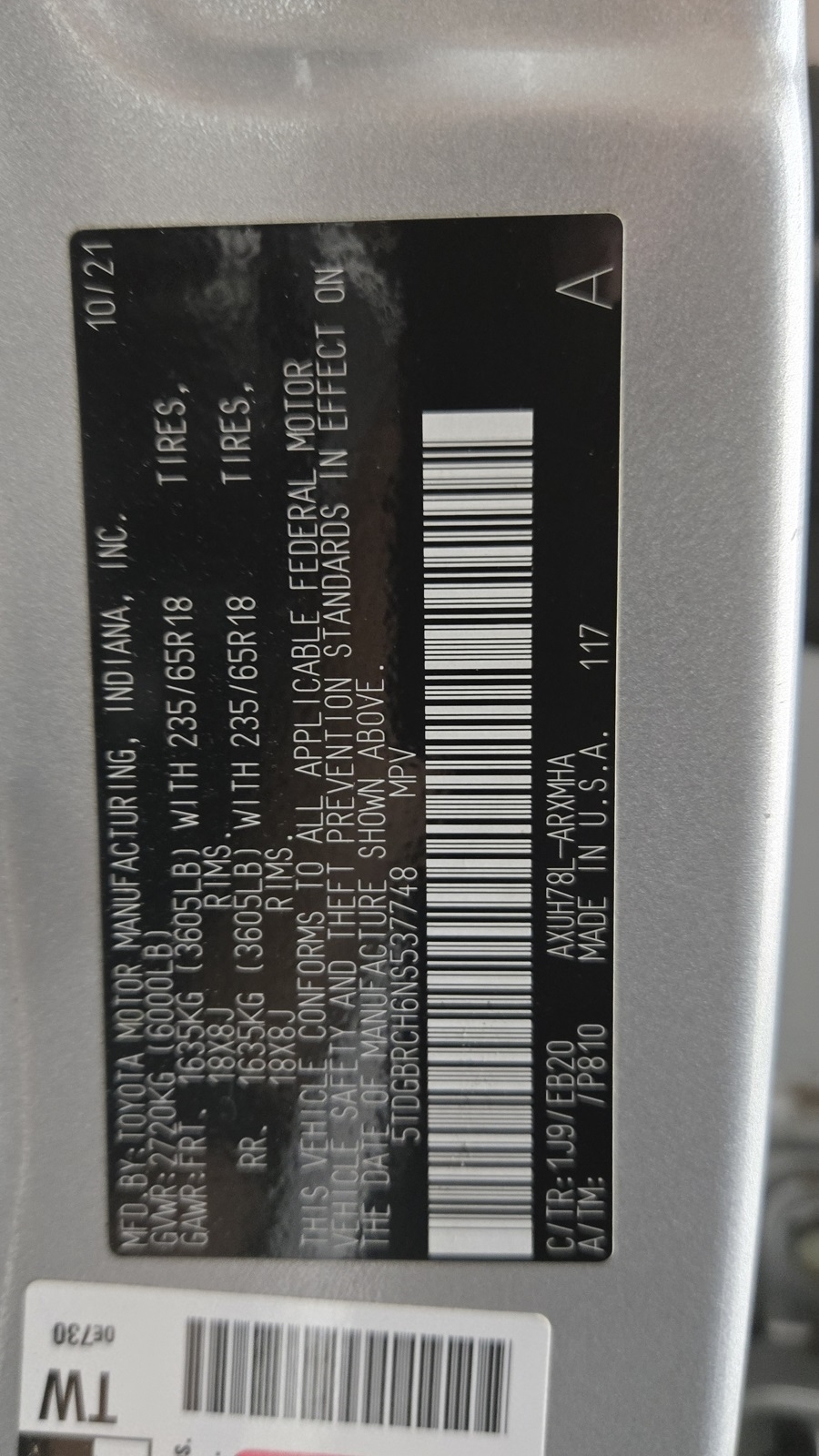 5TDGBRCH6NS537748